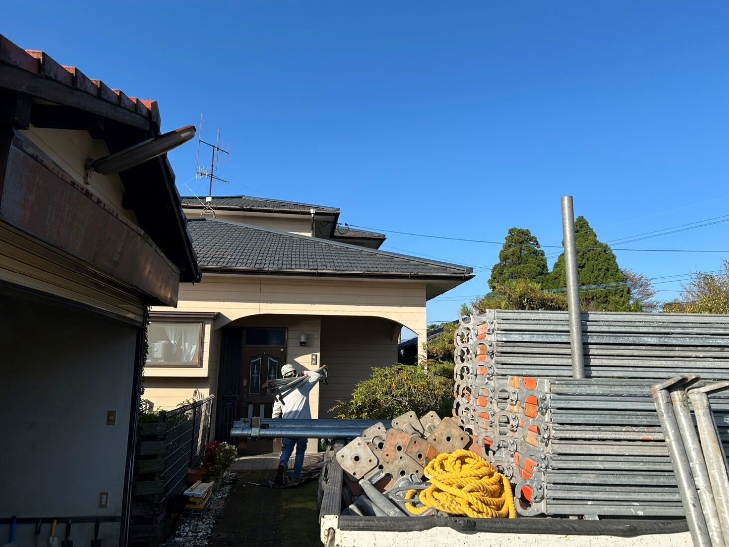 代表親方ブログ南阿蘇村 住宅塗装工事着工ですタイキリフォーム代表の田上大樹です本日より南阿蘇村の住宅塗装工事が着工となりました。ご依頼誠にありがとうございます。作業内容は足場の架設です。私達職人にとって足場は作業の効率を上げ、命を守るアイテムとして必要不可欠です。しっかりと打ち合わせを行い美しい足場を組んでもらいます。関連記事外壁塗装工事の足場、効率よく!且つ安全に施工するためにそれでは明日もご安全に。ありがたいことにお問い合わせが増えております!ご信頼いただきまことにありがとうございます!お見積は無料です、代表の私も一緒に伺います。是非一度タイキリフォームへご相談ください☺
