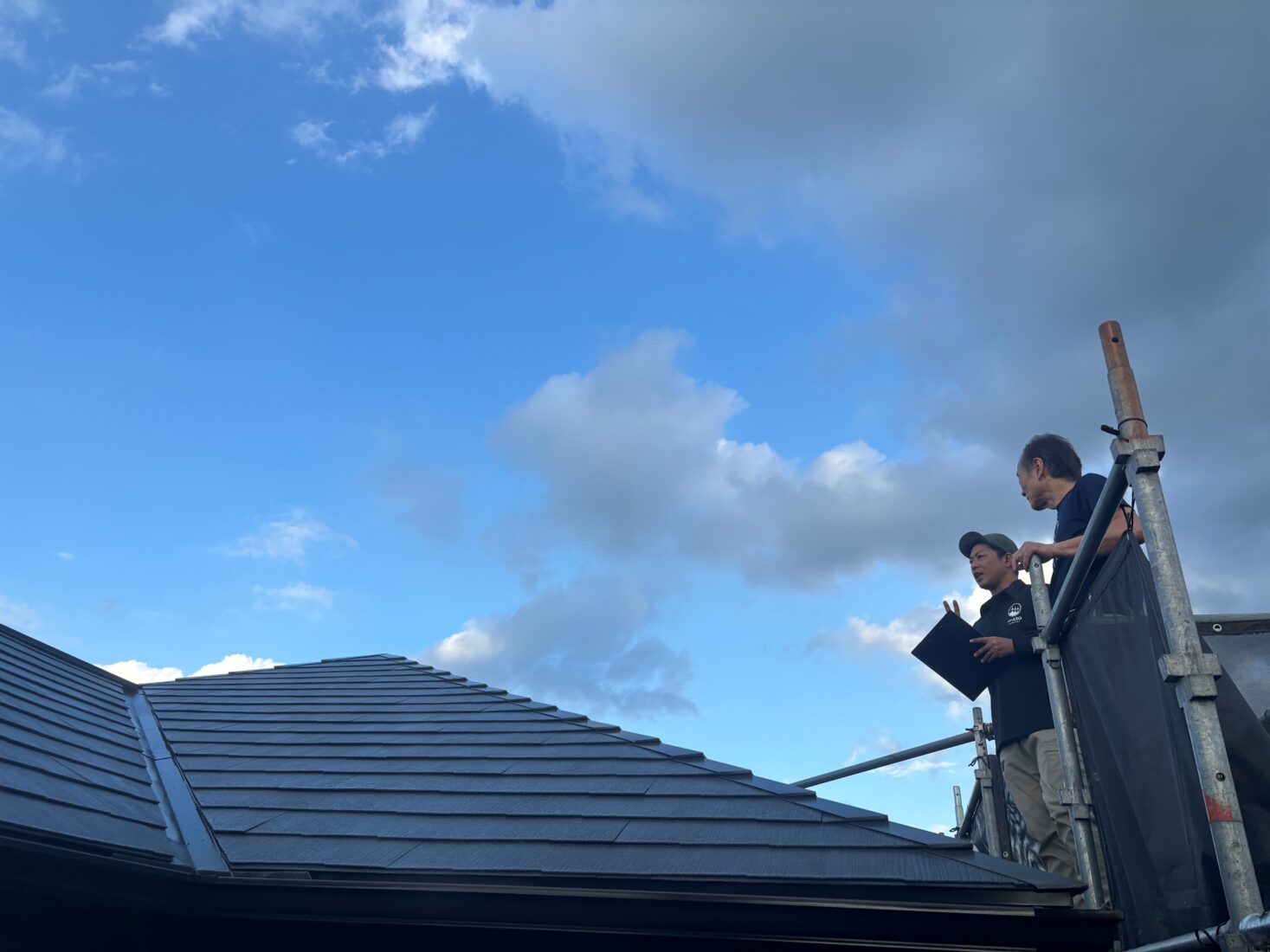 代表親方ブログ菊池郡大津町 住宅塗装工事 完工ですタイキリフォーム代表の田上大樹です!本日、足場解体工事を抜きすべての工事か完了しました。ご請求の前に最終確認としてお客様と一緒に施工箇所を周ります。足場に昇り慣れていらっしゃるので、屋根上も難なくです。※施工中はヘルメットを着用しております「チラシを見てよかった!」とN様。目に留めて頂き、ご依頼を頂きまして誠にありがとうございました!!N様邸の施工事例も近日中にアップさせていただきます。皆様是非ともご覧ください✨年末に向けご自宅のメンテナンスをお考えの方は、家族を大事にするアットホームな会社、タイキリフォームへ是非ご相談くださいね😌無料お見積りはこちら