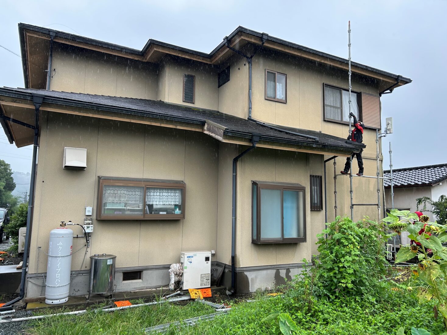 代表親方ブログ菊池郡大津町 住宅塗装工事着工です🏠タイキリフォーム代表の田上大樹です菊池郡大津町の住宅塗装工事が着工となりました。生憎の雨でしたが、安全を配慮しながら足場を架設していきます。弊社では基本的に必ず足場の架設を行い施工します。それはなぜか?その理由をコラムに掲載しております是非ご覧ください☺関連記事外壁塗装工事の足場、効率よく!且つ安全に施工するために完工に向けて安全第一で施工して参ります!!今年も折り返しとなりました、年末に向けご自宅のメンテナンスをお考えの方は、家族を大事にするアットホームな会社、タイキリフォームへ是非ご相談くださいね😌無料お見積りはこちら
