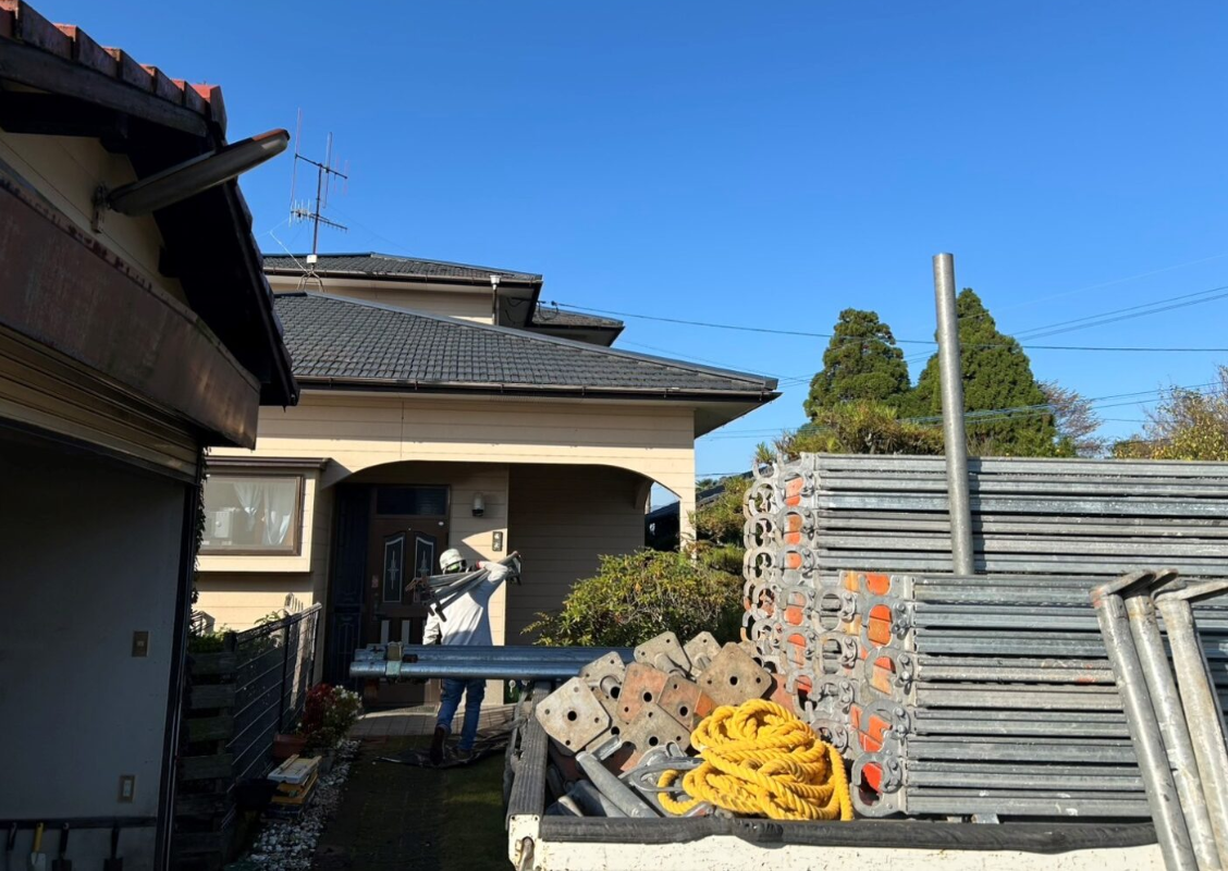 雨どいの交換工事は足場架設が必要です(だから、外壁塗装と一緒に交換する方が多いですね…)